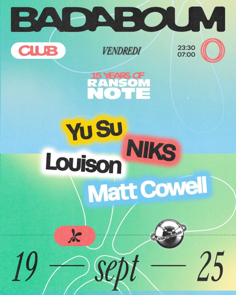 As September rolls around and the summer starts to cool we’re hearing back up again and celebrating the next leg of 15 years of Ransom Note at one of Paris’s most beloved venues Badaboum.