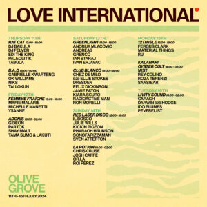 Love International has announced the full stage splits for the week long festival, including an all night takeover with Club Blanco at the Olive Grove, which starts at 6pm and runs straight through until 8am.