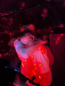 For us, the opening track always sets the tone and has a lot more impact on the night, building the audience’s trust in the selections – if everything goes to plan, once you’ve gained that trust, you can start to get away with taking a lot more risks and being more free… so yeah, the early records allow you to do that and then by the end… you could almost play whatever you like, within reason! Our last track in this mix / on the night is a emotional one by Barker, here’s a pic of us hugging it out at the very end: